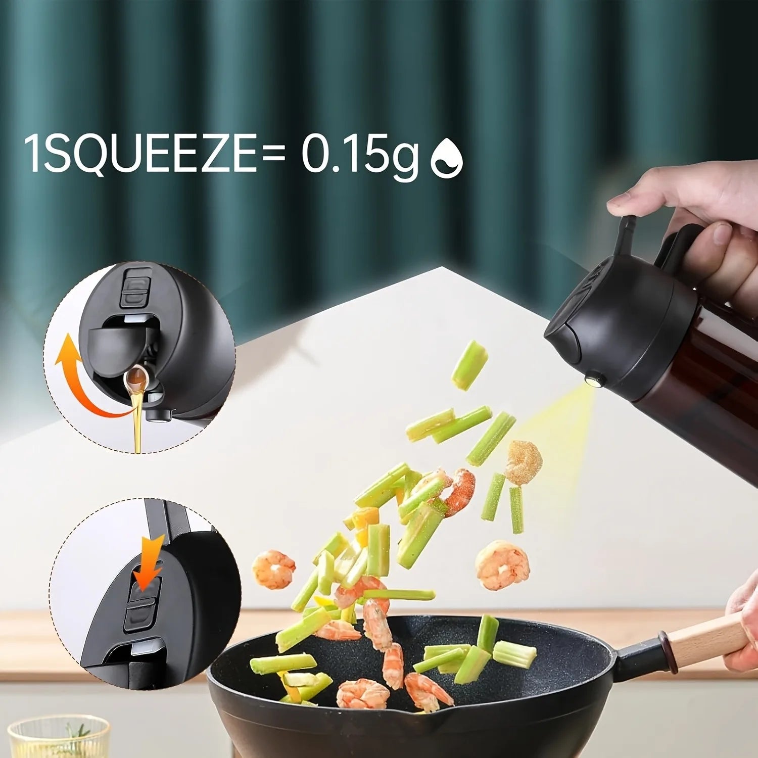 4.Oil mister is perfect for olive oil, sesame oil, avocado oil and etc.. Just a little press,you will get fine mist on air fryer, pan, stove. Deeply loved by chefs and gourmets, the real kitchen practical little helper.