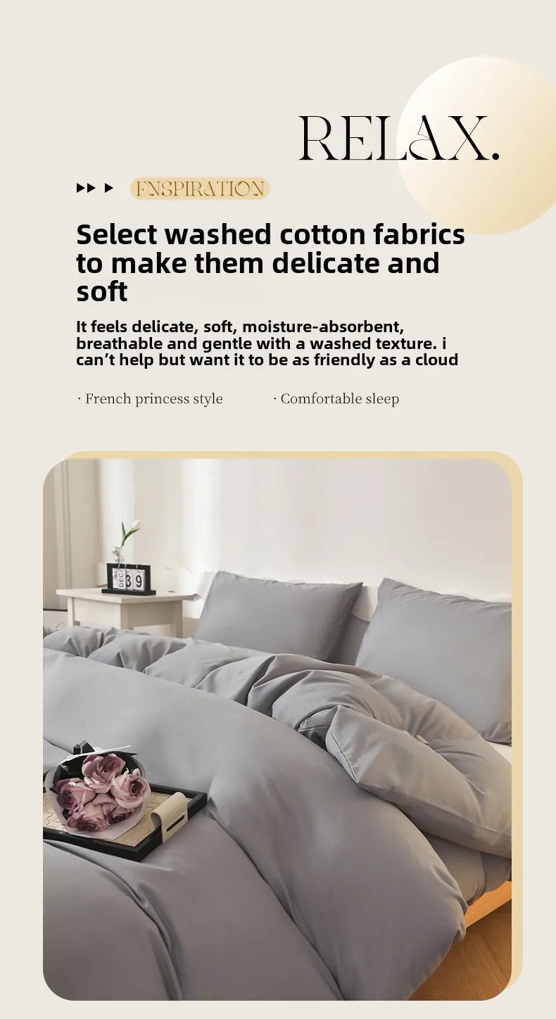 2025 new washed cotton solid color single quilt set