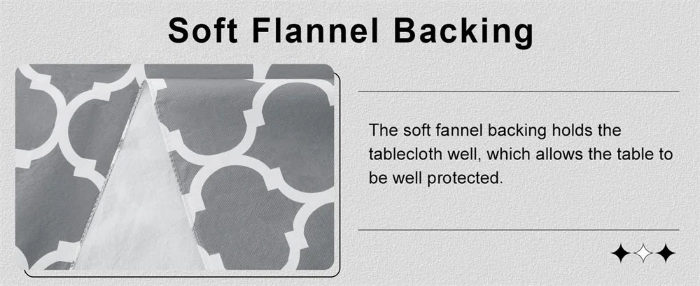 Olanly durable tablecloth is made of thick vinyl and premium flannel backing that is thicker than others'. Our vinyl tablecloth can be reused many times and provides effective protection of your table from stains and spills, helps prevent dust and prevents the formation of dents, chips and scratches, and prolongs the service life of the table.