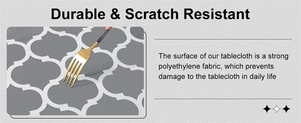 Olanly vinyl tablecloth is more waterproof than the waterproof coating of farbic cloth. Don't worry about the splashing of drinks or soup, make your meals more enjoyable. It's perfect for families with children and pets.