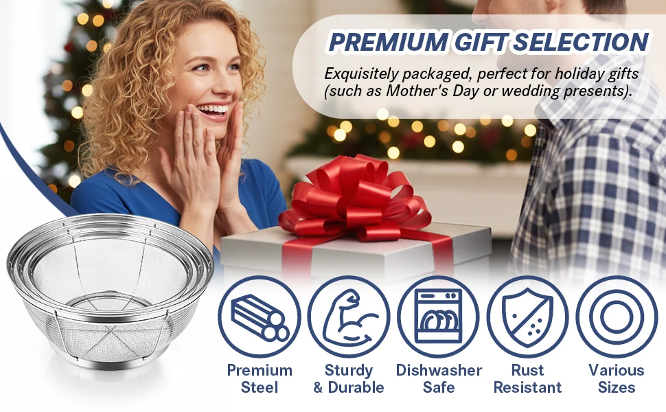 【Material】: This colander bowl is made of high-quality food-grade stainless steel, ensuring long-term use and rust resistance.