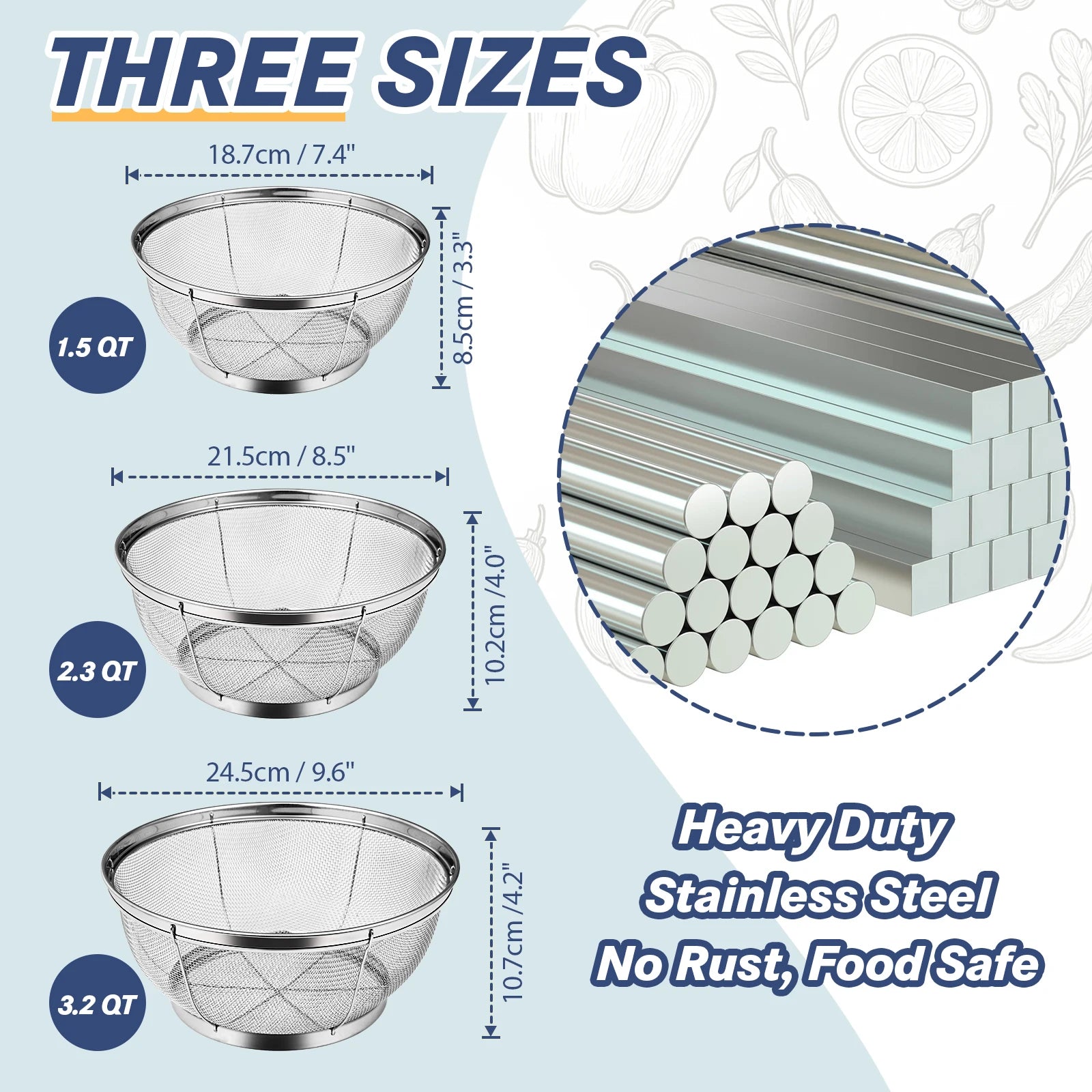 Material: Food-grade stainless steel colander
